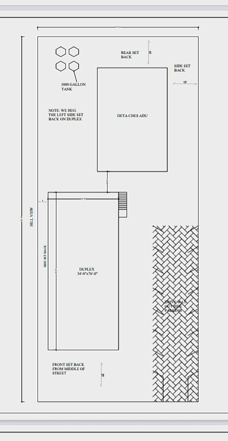 County-Approved Plans Included: 2-Story Duplex (4 Bed / 4 Bath, 2,240 SF) with 2 garages + 3 Detached ADU options (560 SF,